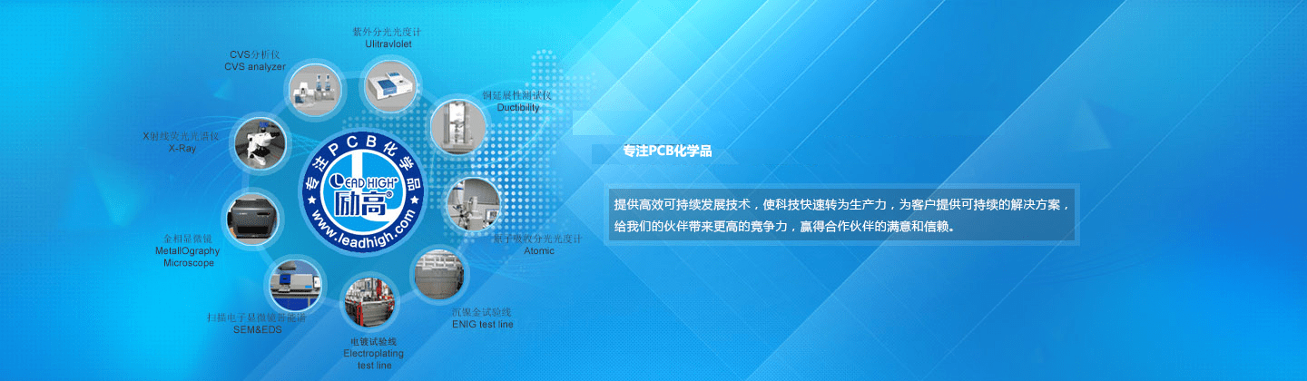 深圳市勵高表面處理材料有限公司是致力于金屬或非金屬表面技術處理領域的集研發、生產、銷售、服務為一體的科技實體,經營印刷線路板、五金、ASB塑膠等表面處理的添加劑,以及其他表面處理產品。公司憑借雄厚的技術力量和人才優勢,不斷進步,走創新發展之道路,以“誠信、研發、服務”為經營理念,以ISO9001標準化管理體系為品質保證,以客戶滿意為服務宗旨,使產品質量和新產品與國外同步輸出,為客戶提供快捷、有效、低成本、服務周到的服務。